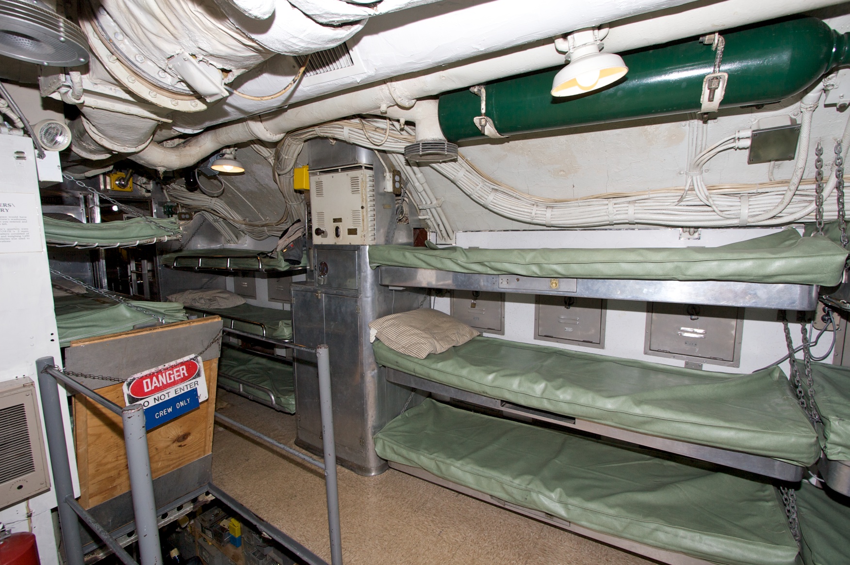 Above: The “comfortable” bunks. Considered spacious, it just shows that everything’s relative. Note the gangway on the left that leads down to the battery room.