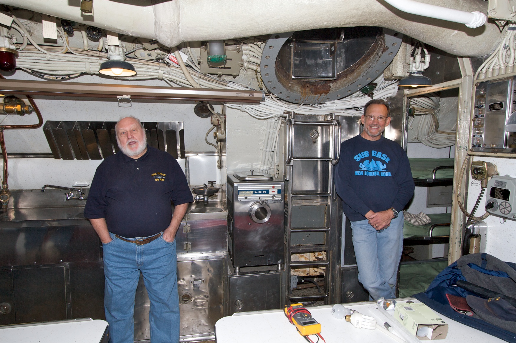I started asking questions and we immediately hit it off. He started explaining the workings of a WWII attack sub, I kept asking questions and he ended up taking me through the entire boat, compartment by compartment, from aft to bow, telling me everything. At one point there was a gangway going down a deck that was roped off: the battery compartment & machine shop. He took me down there, showed me the batteries. I saw the bunks, the engine room, the map room. Hung out in the Galley with him and the other volunteers. The Radio Room. Past another roped off ladder, this time up, into the Conning Tower where I saw the “computers” used to determine the attack parameters. They let me look through the periscope. I was in heaven.