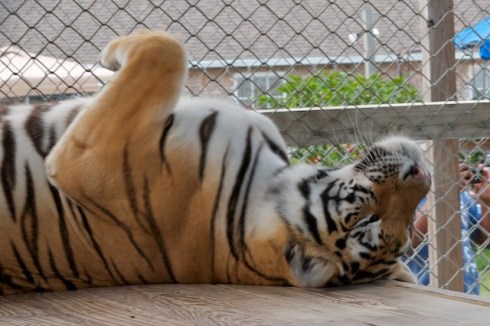 These folks have a huge cage in their backyard, just beyond the pool (this is Florida after all). Behind three layers of chain link fencing are two 400 pound tigers. They are, to say the least, impressive. Particularly after a couple of adult beverages. Before we were allowed into the inner enclosure we were warned to not stick our fingers through the chain link fence. As if THAT was going to be an issue. The reason was not in fear that they’d be used as a snack, but that these tigers are pretty much like any other cat in many ways. Cats like to rub against things. Four hundred pounds of cat rubbing against fingers stuck through fence equals broken fingers.