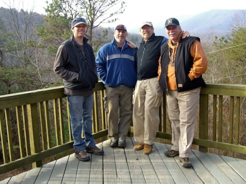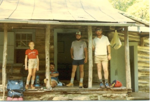 That winter, while huddled around a heat stove in the cold garage that served as the testing lab, George and another friend/co-worker Arne, decided to put the gear to the test. They packed everything they could think of into the packs, threw some more stuff in just in case they had forgotten something, and went backpacking in the Shenandoah National Park. And were hooked. George went on to become extremely involved in the Potomac Appalachian Trail Club where he devoted countless volunteer hours over the years. And a traditional camping trip to a backwoods cabin on the second weekend of January was started. For about 28 years now, we have gone off to the woods for a bit of hiking in the cold, more than a bit of adult beverages and laughter. Lots and lots of laughter. Early on, George’s son, Jesse, became part of the crew (I can still picture his first taste of alcohol in the Virginia backwoods). Each year we caught up as kids were born and grew, as divorces took place and marriages were celebrated. Each year a group photo was taken. Most of these show four guys heavily bundled mugging for the camera. One of the first was taken during a summertime trip on the porch of the cabin that gives our group our name: Corbin Cabin.
