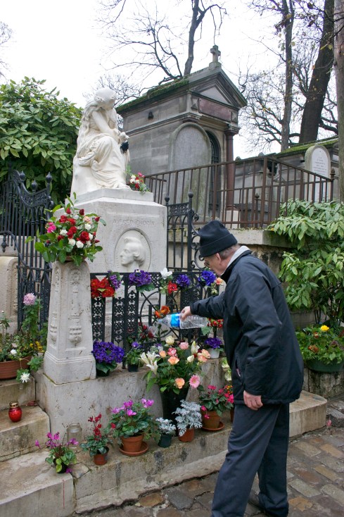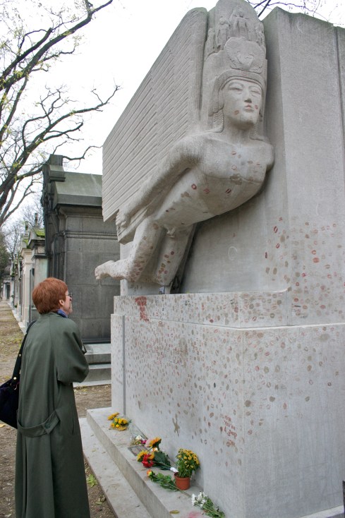First off, it’s huge (over 190 acres). There are lots of other famous people resting here. One of the first we saw was the bizarre tomb of Oscar Wilde, which for reasons I can’t begin to explain was covered with the red lipstick impressions of hundred of lips (not all female, I suspect).