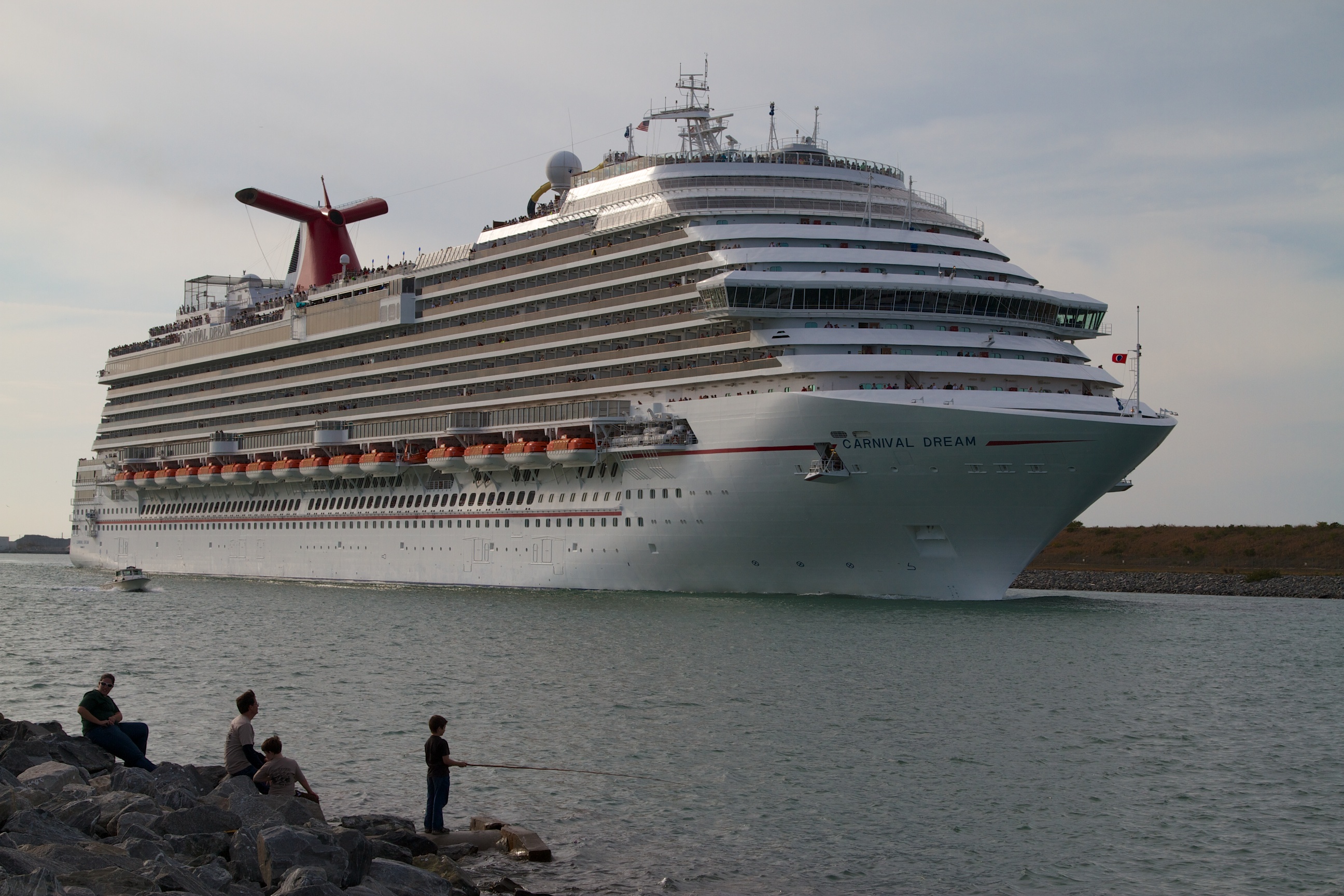 Jetty Park is the farthest north you can go on the beach before the Cape Canaveral Air Force Station/Kennedy Space Center complex. It is part of Port Canaveral and used to be a favorite spot for watching Space Shuttle launches. One of the “things to do” is to watch the traffic arrive and depart from the port. Commercial fishing boats and ocean-going cargo vessels are common sights. Just across the channel is a berth for submarines — boomers — that stage out of here when they utilize the missile test range off the coast. On a previous visit we saw one heading out to sea. However, a daily sight are the comings and goings of the cruise ships. Every afternoon, starting about 4:30 or 5:00, these huge floating pleasure palaces float on by with thousands of partiers on board. Or in the case of the Disney ships, a whole bunch of relaxing parents and wired kids. Whatever. A “thing to do” is to gather on the side of the channel to watch these hotels of the sea head out. It’s a bit of a party atmosphere. The impression you can’t help but take away is that damn, those things are HUGE!