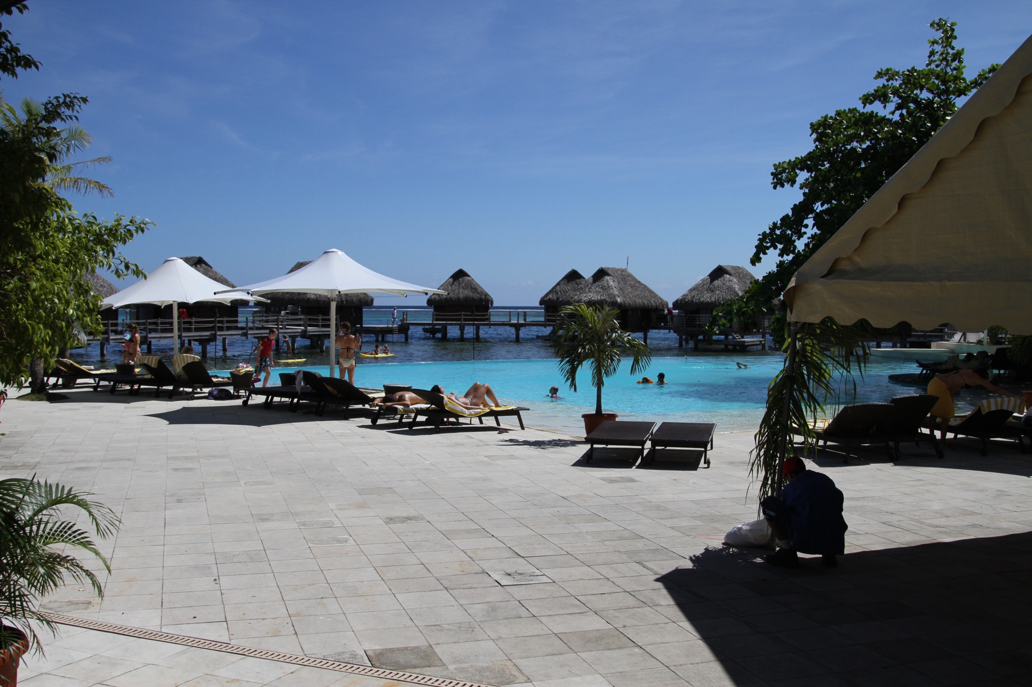 So we survived the flights from Orlando to LAX and from LAX to Papeete (overnight) and the lengthy (7 minute) flight from Papeete to Moorea and, as I type this, we're in our “transit” room at the Moorea Pearl Resort waiting on either a) our permanent room to be ready or b) 12:00 to roll around so we can eat! We're exhausted, more than a bit punch drunk, and WAY excited to be at this beautiful location. We'll post more, but this will get us started.