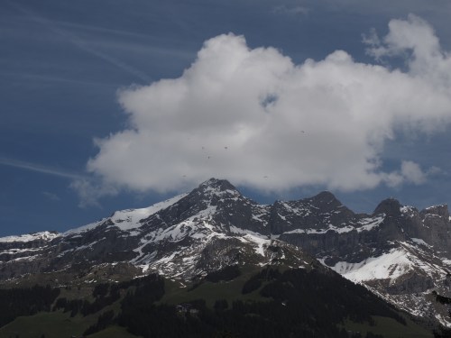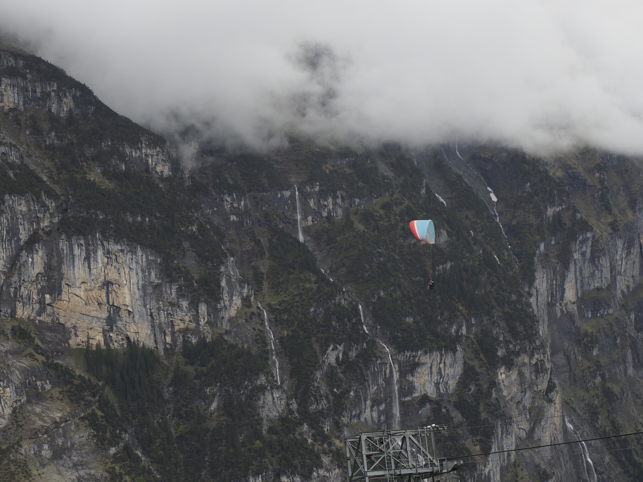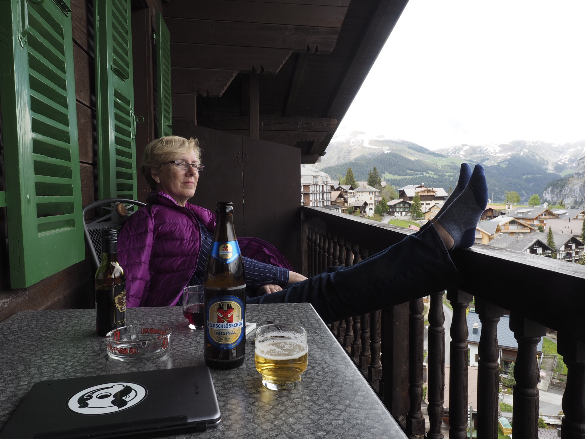 Back to Murren for another short walk, then we picked up a large bottle of beer and a small bottle of wine and sat on our balcony and watched the sun light up the face of the mountains on the opposite side of the valley and the paragliders float right across in front of us. And below us. Awesome.