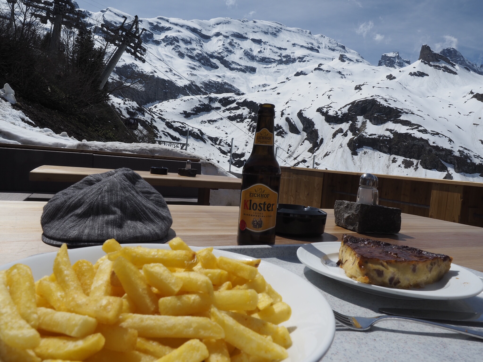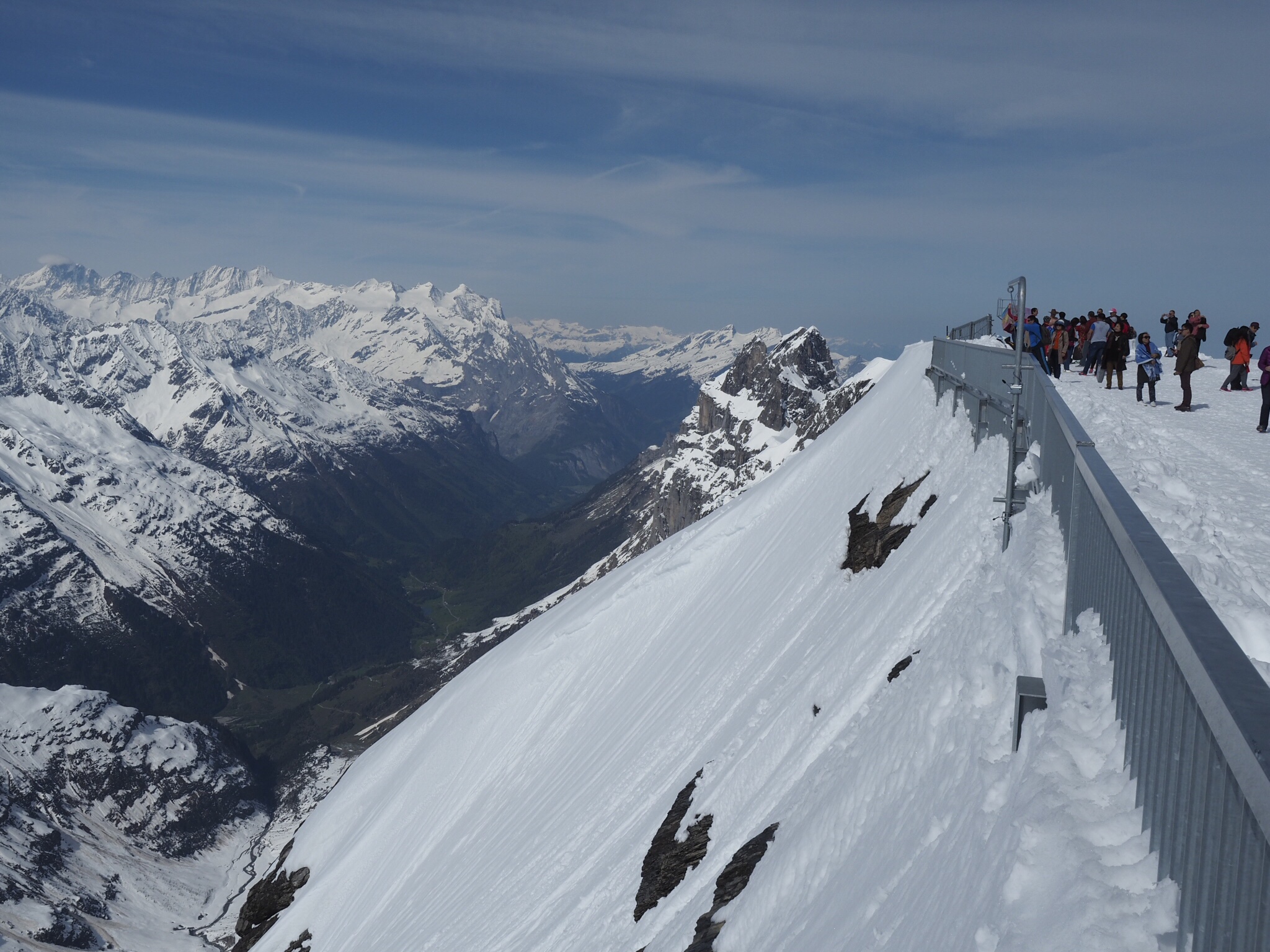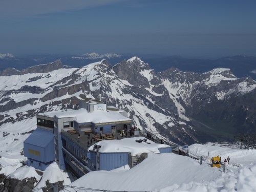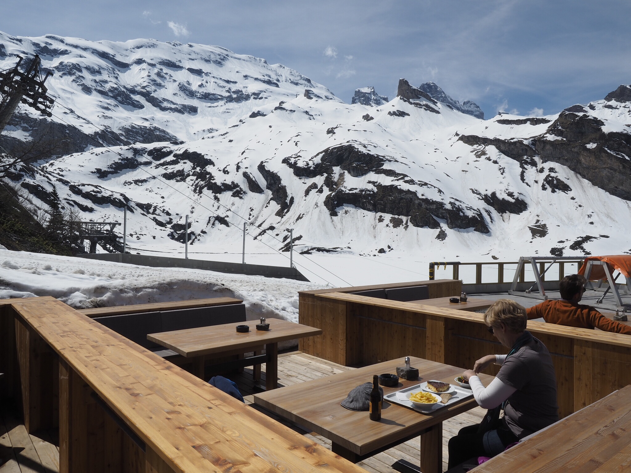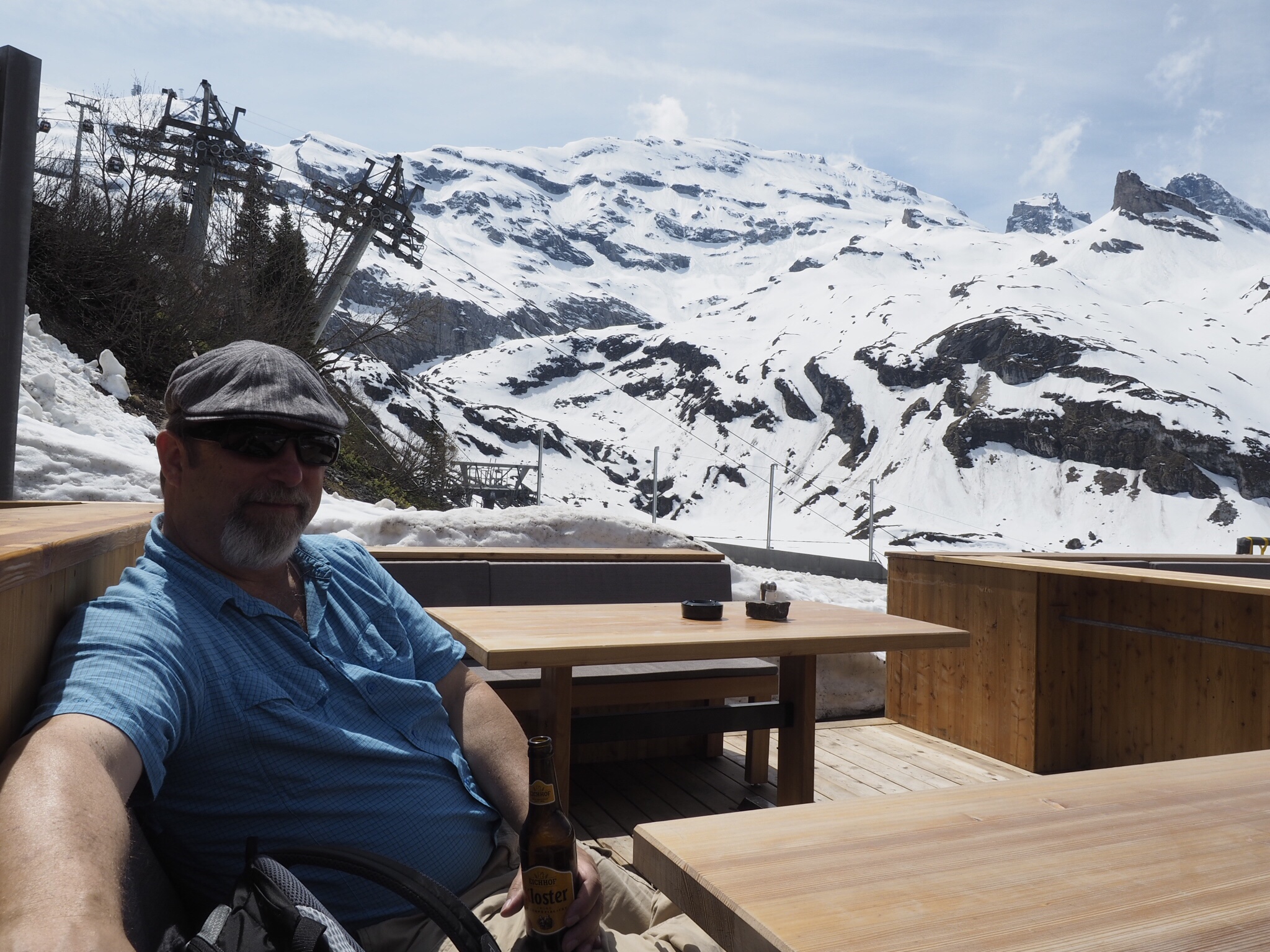 I'm too tired to do much more than quickly post some photos from our great day here in Engelberg. We started the day with a trip up Mt. Titlis (10,000') where we slipped and slided through the snow, dodging tourists, taking photos, and generally being awed by the views that are one of the reasons we came this way. It really was spectacular. After a sunny lunch partway down the mountain, we crossed the valley and took a hike that, to us flat landers, was a tiny bit challenging. Dinner and drinks, including the most expensive shot of rum I've ever paid for, and we're ready for bed.