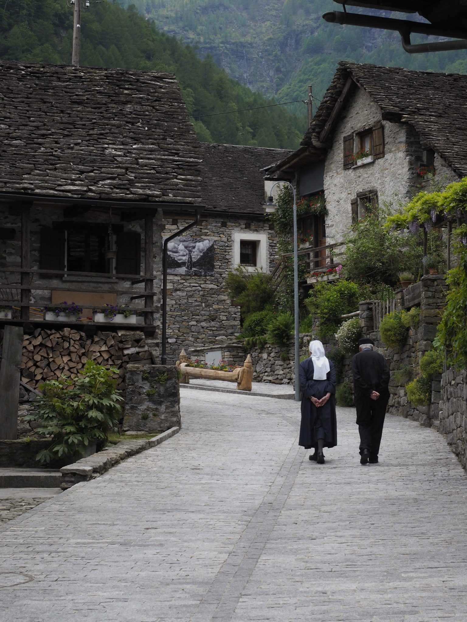 So, only enough time for another quick post. Yesterday we drove from Engelberg to Lugano with a few stops on the way, one of them a dam where they filmed scenes for a Bond movie and — wait for it Karen — “The Amazing Race.” We headed up a twisting turning road (in a 40' bus) to a tiny Swiss village looking at more spectacular scenery the whole way. Wow. We then drove on to Lugano for dinner and a lakeside stroll.
