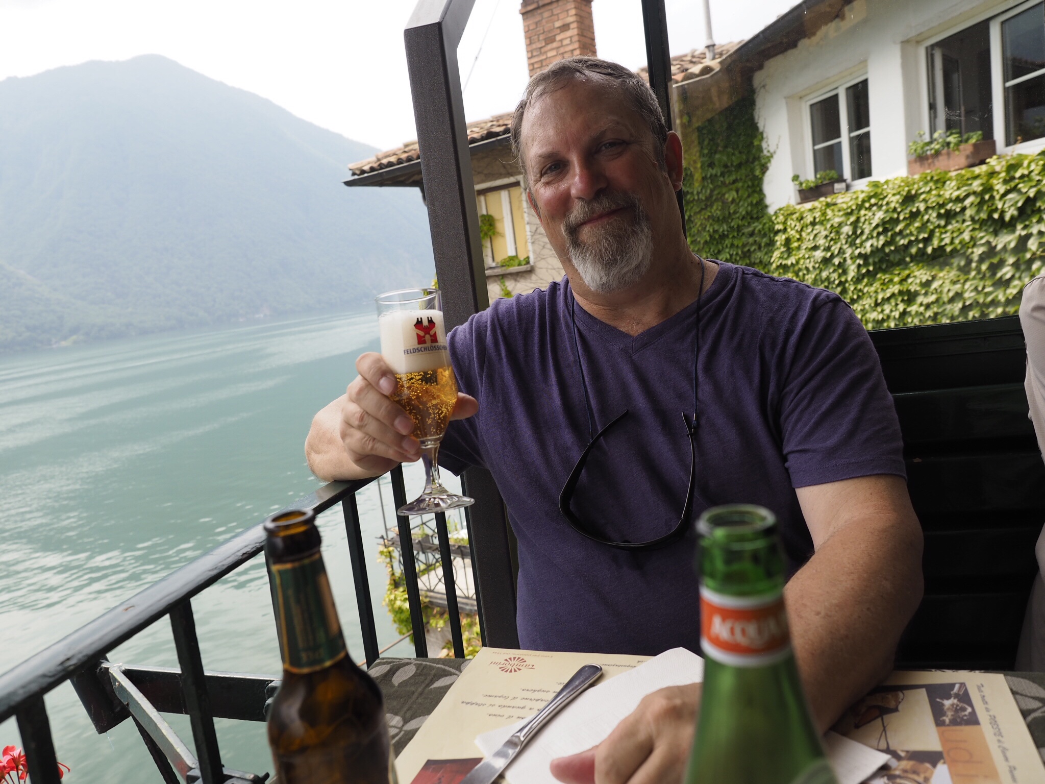 Today we took a boat ride to Gandria, a tiny village perched precariously on a hill alongside the lake. We wandered the very narrow streets and alleys for a while, always up or down, never level, and then had a delicious lunch (with adult beverages, of course) perched over the lake. It was pretty unbelievable.