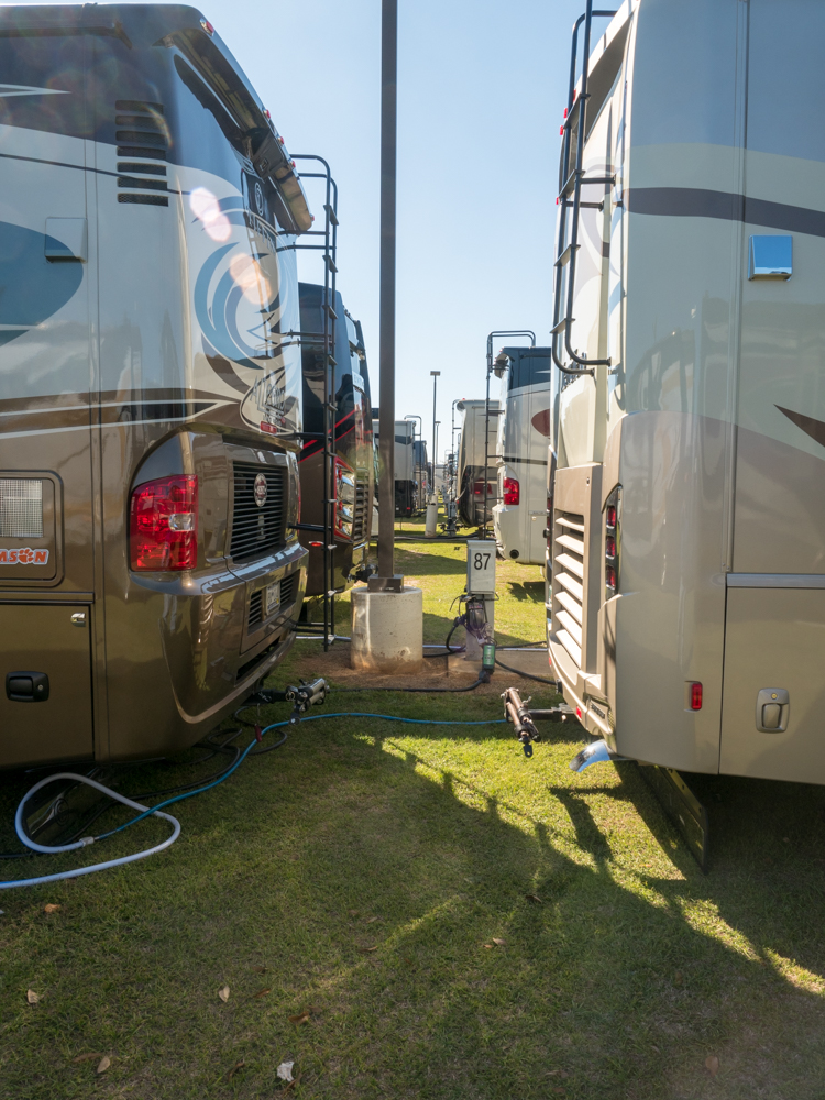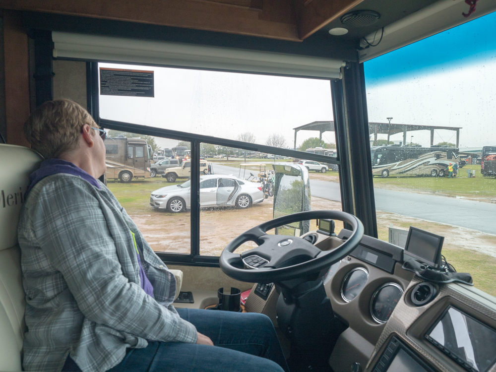 We pulled away this morning much smarter then when we arrived. Who knew, for instance, that under normal wear and tear the brakes on our Class A coach will last its lifetime? I learned how to change the air filter on the coach. We found a bunch of items that we’ll end up getting (I’m looking at you, WiFiRanger) and were able to research a bunch of others. I got the representative from my tire pressure monitor system to come out and troubleshoot my problem (thanks, TST, for getting me working). And we had a great time with new friends (hi Tim & Beth, we’ll see you soon).