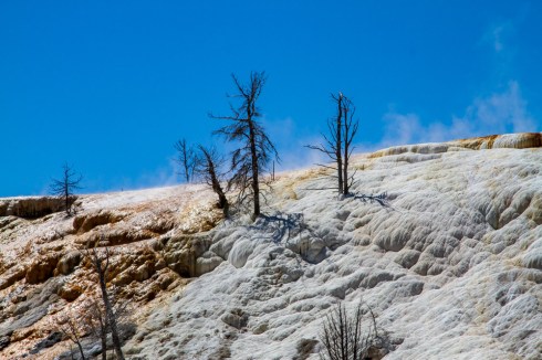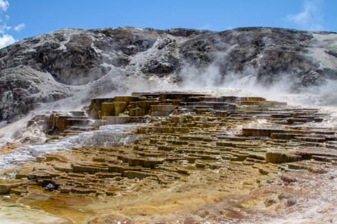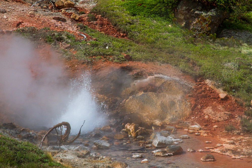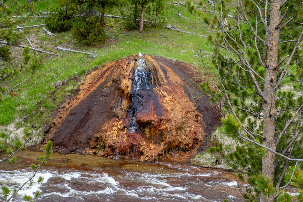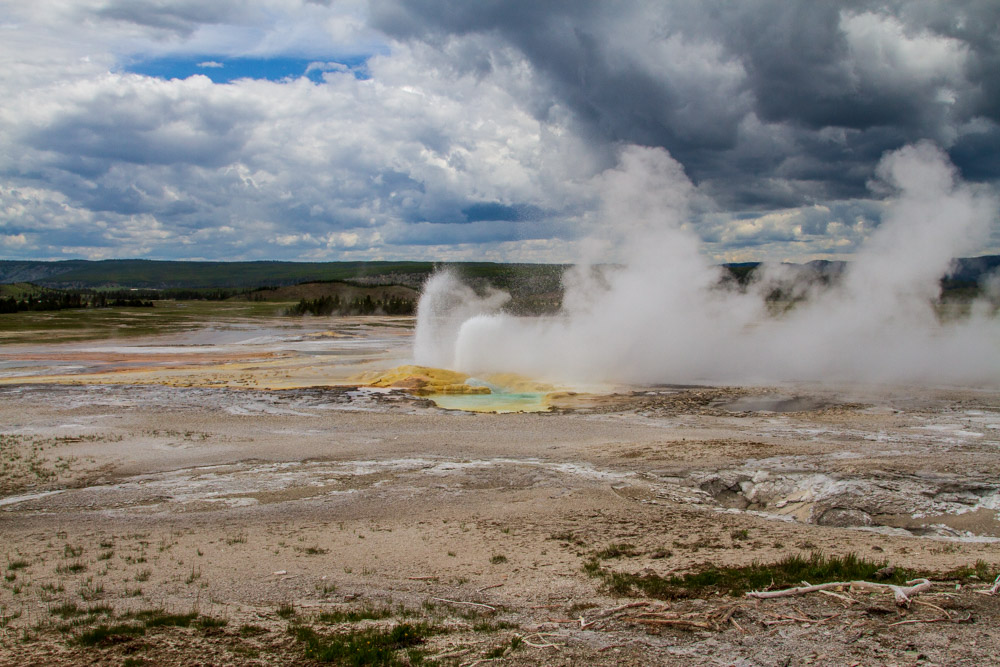 We saw way too much to cover in one post. This one focuses on the geothermal delights to be found in virtually every corner of the park and even many nooks and crannies outside it. It’s odd to be driving down the road and see steam and/or bubbling “water” coming out of the ground. It’s even odder when you just start taking it for granted. One thing we didn’t take for granted was just how pretty these things are. The colors can be spectacular. The bottom line, though, is that things can look pretty damn primal and dangerous. It’s not nice to fool with Mother Nature, especially when she has very hot, very acidic liquids flying around.