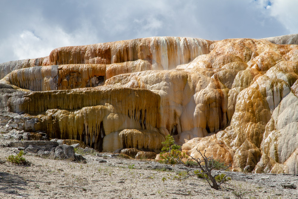 The title of this post is a phrase I use when I’m in an area that is just so beautiful and/or interesting that anywhere I point my camera there is a potential “keeper” photograph. Yellowstone National Park falls well into this category. We had briefly visited the park on a couple of occasions in the past, but this was to be our first extended stay. We were parked just outside the north entrance in Gardiner and were close enough that my morning walks took me from the RV through town and into the park. Nice.