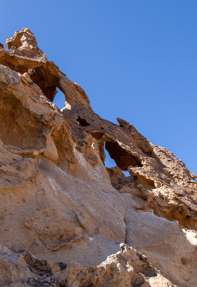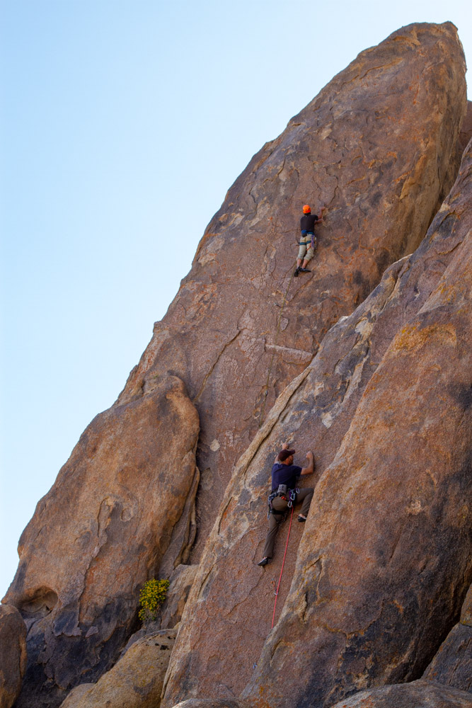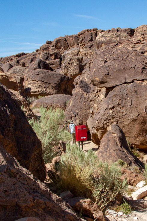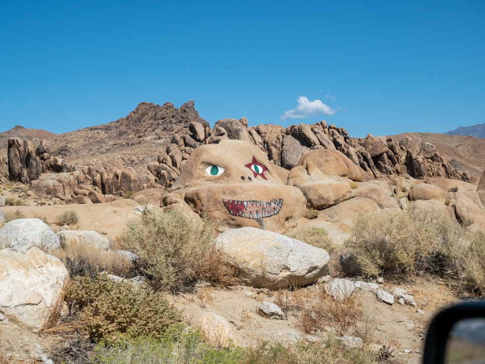 We arrived in Bishop, CA, and set up at a nice, if a bit sterile, RV park. We spent a nice day wandering about the area and taking a walk in a small canyon called Happy Boulders, not to be confused with Sad Boulders which is about a quarter mile away. This area is known for its bouldering opportunities. Bouldering, in case you don’t know, is essentially how one practices rock climbing relatively safely. Climbers walk up the canyon with large pads on their backs that they lay below them when climbing, the idea being that they’ll fall onto to the pad for a gentle landing instead on the hard ground for a less gentle one. Looked like it would have been fun a decade or two ago.
