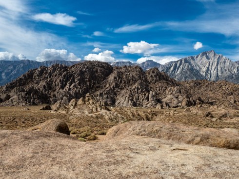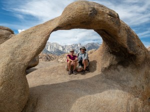 The coolest thing in the area are the Alabama hills. The eastern slope of the Sierra Mountains rises dramatically on the west of the valley and the east side is bounded by the Inyo Mountains. Both the Sierras and the Inyos were pushed up by geologic forces a long time ago, but in between them are the Alabama Hills. These “hills” were left behind and look as they did back before the two ranges were formed. The differences between them are readily apparent. The weird geography and massive boulder formations were a magnet for Hollywood movie makers. Many westerns and even classics like “Gunga Din” were filmed here. It’s also very popular with the bouldering community. We spent a couple of days poking around here and wandering up the Mt. Whitney Portal road. It’s a really beautiful and wild place and we will certainly return.