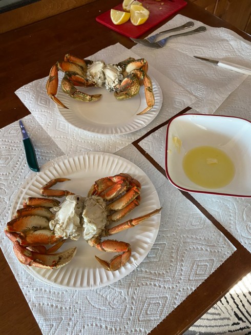 Dungeness crab. People are pulling these out of the water like crazy. These were gifted by neighbors. Different from our beloved blue crabs, but completely acceptable! Garibaldi, OR 7/4/20