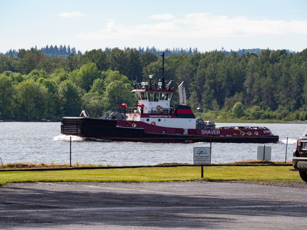We finished up our quick visit to Washington with a short hop to a nice rv park on the Columbia River. We had a pull-in site that allowed us to sit in our front seats and watch the traffic on the river floating by. It was a bit jarring to see large, open-going vessels gliding by so far inland but we quickly got used to it. My neighbor turned me on to an app called Vessel Finder that I found to be pretty cool. I was able to identify the boats I was looking at or see when a big boy was going to come by easily on my phone for free. Fun. After a week or so I was actually recognizing the specific tugs shoving barges up and down the Columbia.