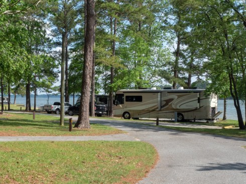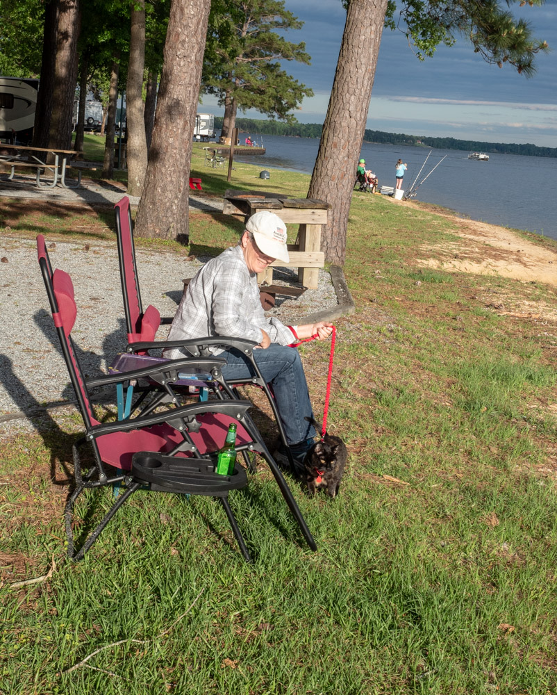 We stayed at a Corps of Engineer (COE) campground just south of Eufaula, Alabama (pronounced “you-falla”) called White Oak (Creek) Campground. (Why “Creek” is in parentheses is a mystery.) This is our second COE campground and we just love them. By definition, they are almost always on water. And they are cheap. With our America The Beautiful Pass, we paid $12/night for a water view. Seriously, Patti and I stood in front of our picture window just staring at the view many times during our four nights here. This is a big reason why we’re doing this.