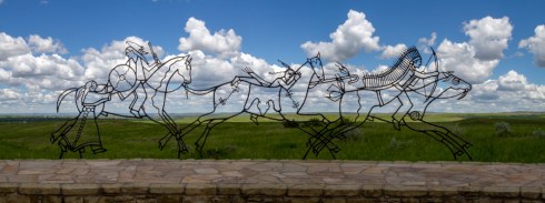 The major thing we did while here was visit the Little Bighorn Battlefield National Monument. We really enjoyed the visit. The area is beautiful and the presentation of the events was interesting and well balanced between both sides of the events that took place. As a history buff I really enjoyed seeing the terrain. We walked the area of the “last stand” and drove the loop road that covers the overall territory. Fascinating. The Federal lands are actually in two areas connected by that road crossing Indian land which is used for grazing horses. Lots of horses. At one point a herd was crossing the road. What was apparently the alpha male blocked traffic (with help from one of his paramours) until everybody got across, then human and horse each went about their business. My horse-loving wife was thrilled.