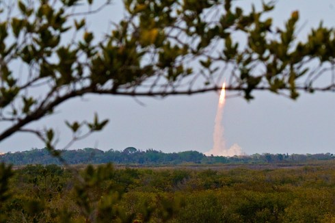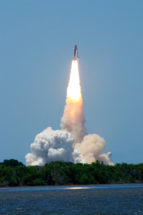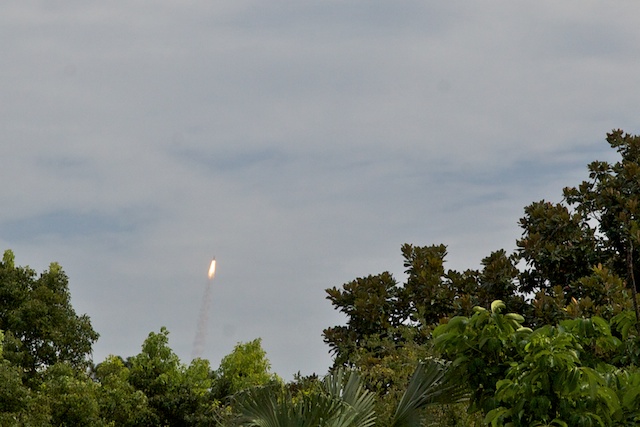 The first launch I saw live was STS-6 (Challenger). Today I stayed home, unwilling to brave the roads to watch from close up. 1,000,000 people all hopping in their cars at the same time is not my idea of fun. (I talked a bit about that here.) I watched from my back yard but, due to weather, I only saw it for about 2 seconds before it slipped into the clouds. The view below is a quick shot from my backyard. It’s something that every taxpayer should have seen at least once. I was very fortunate. I can only hope that I will have the chance to see men launched from KSC again before I retire. Odds are not good at this point, but you never know.