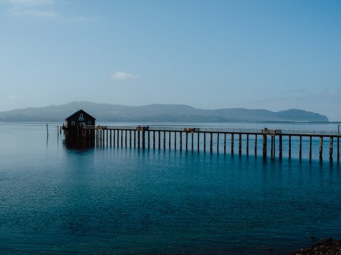 The old boathouse and new Coast Guard Station in low cloud conditions. Not an unusual event. Garibaldi, OR 7/27/20